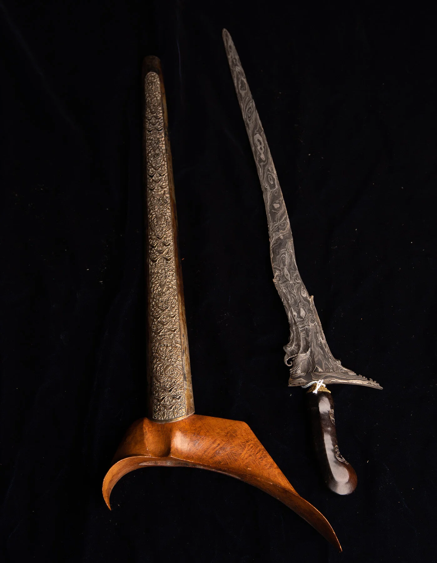 Antique spear point knife with a handle made out of bone and brass. Intricate engraved floral motif on one side of the blade. A rare and unique item.